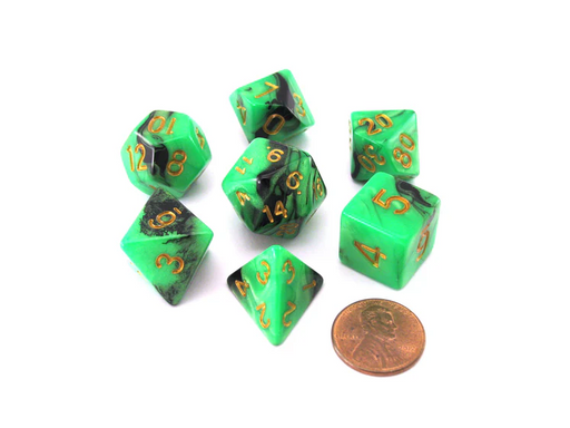 Green and Black Dual Color Dice Set 16mm Pizza Dungeon Dice